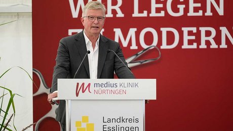 Mit Blick auf die medius KLINIK NÜRTINGEN und die nun abgeschlossenen Baumaßnahmen sagte Eininger: „Die umfangreichen Erweiterungsmaßnahmen unserer Nürtinger Klinik sind ein wichtiges Standortbekenntnis und werden die medizinische Ausrichtung des Hauses als operativer Schwerpunkt weiter stärken.“ Dabei bedankte sich der Landrat und Aufsichtsratsvorsitzende ausdrücklich bei Sozialminister Manne Lucha, MdL, für die enge, vertrauensvolle Begleitung und Förderung in Höhe von 41,2 Millionen Euro durch sein Ministerium.