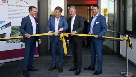 Feierlicher Moment: Das Band zur Einweihung der neuen Notaufnahme in Nürtingen wird durchschnitten. Von links nach rechts: Sebastian Krupp, Geschäftsführer medius KLINIKEN, Sozialminister Manne Lucha, Landrat Heinz Eininger und Dr. Jörg Sagasser, Geschäftsführer Medizin medius KLINIKEN | Foto: Fotografie Ebinger Bild vergrößern -