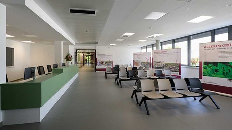 Auch für die Patientinnen und Patienten, für die eine ärztliche ambulante Notfallversorgung außerhalb der Notaufnahme erforderlich ist, bietet das neue Gebäude mit der angegliederten Notfallpraxis, die teils von den medius KLINIKEN und teils von der niedergelassenen Ärzteschaft betrieben wird, optimale bauliche Voraussetzungen. So verfügt die neue Notfallpraxis über separate Behandlungsräumlichkeiten, teilt aber Wartebereich und Tresen mit der ZNA.