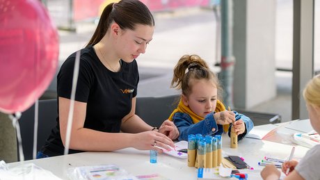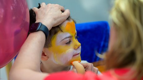 Auch für die kleinen Besucher gab es ein vielfältiges Programm. So hatten ältere Kinder beispielsweise die Möglichkeit, ihren zukünftigen Geschwistern ein Lätzchen zu gestalten oder ein Schmusetuch mit deren Namen besticken zu lassen.