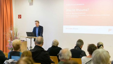 Unsere Experten aus den Bereichen Orthopädie, Unfallchirurgie, Hand- und Wirbelsäulenchirurgie sowie Rheumatologie stellten in ihren Vorträgen die häufigsten Krankheitsbilder des Bewegungsapparates vor. Besonders der altersbedingte Verschleiß sowie Erkrankungen wie Rheuma standen dabei im Fokus, da rund 20 Prozent der über 65-Jährigen unter schmerzhaften Verschleißerkrankungen leiden.