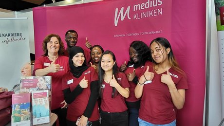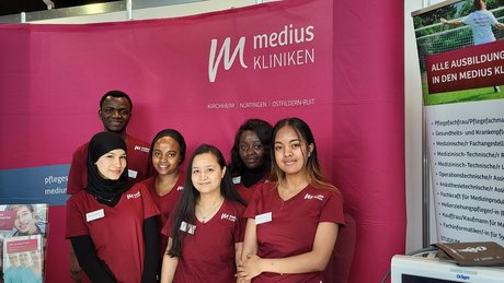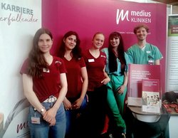 Am Freitag und Samstag warben rund 10 Auszubildende der Berufsfachschule für Pflege aus Ostfildern-Ruit auf der Karrieremesse im Neckarforum Esslingen für die generalistische Pflegeausbildung bei den medius-KLINIKEN. Unterstützt wurden sie an beiden Tagen von einigen Lehrkräften.