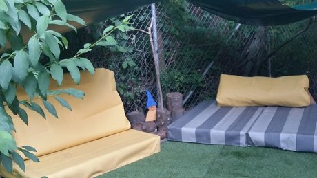 In der Natur gibt es stets vieles zu entdecken und zu erleben. Zu jeder Jahreszeit, bei Wind und Wetter, nutzen wir unseren Außenbereich für unsere tägliche Gartenzeit. Unser weitestgehend naturbelassener Garten, umgeben von Büschen und Bäumen, lädt in allen Ecken zu verschiedenen Bewegungs-, Natur- und Sinneserfahrungen ein. Durch seine Gestaltung bietet er Raum für vielfältige Spielmöglichkeiten. Ob Fußball spielen auf der Wiese, Krabbeltiere mit der Lupe unter Steinen suchen, im Winter vom schneebedeckten Hügel mit dem Schlitten hinunter fahren oder sich hinterm Schuppen verstecken und geheime Pläne schmieden – alles ist möglich. Natürlich dürfen auch Sandkasten, Nestschaukel und Fahrzeuge nicht fehlen. So manches Mal genügt es aber auch einfach, beim Blumenpflücken vor sich hinzuträumen oder die „Chill Ecke“ zu genießen.