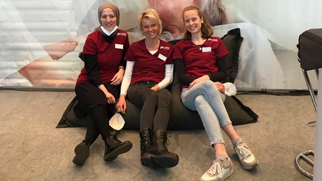 Am Freitag wurden Schulklassen mit einem Guide über die Messestände geführt und haben auch bei uns vorbeigeschaut und sich über unsere 14 Ausbildungsberufe und Studiengänge in der Pflege, Medizintechnik, IT und im Marketing informiert.