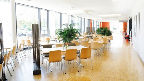 Die Cafeteria im Erdgeschoss steht Patienten, Besuchern und Mitarbeitern an 365 Tagen im Jahr offen. Unser Angebot an saisonalen Gerichten ist reichhaltig. In angenehmer Atmosphäre - bei schönem Wetter auch auf der Terrasse - können Sie frühstücken, zu Mittag Essen oder Kaffee trinken. Sie können zwischen mindestens vier Gerichten wählen. Natürlich ist auch ein vegetarisches Gericht dabei.