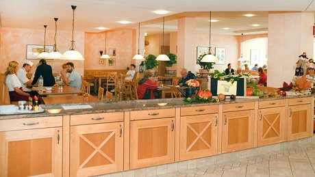 Die Caféteria / das Restaurant „Oase“ im Erdgeschoss steht Patienten, Besuchern und Mitarbeitern an 365 Tagen im Jahr offen. Unser Angebot an saisonalen Gerichten ist reichhaltig. In angenehmer Atmosphäre - bei schönem Wetter auch auf der Terrasse - können Sie frühstücken, zu Mittag Essen oder Kaffee trinken. Sie können zwischen mindestens vier Gerichten wählen. Natürlich ist auch ein vegetarisches Gericht dabei.