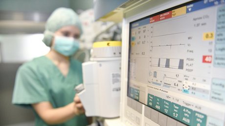 Für jede Anästhesie steht jeweils ein Narkosearzt bereit: Er weicht auch während der Operation dem Patienten nicht von der Seite, kümmert sich um die Fortführung der Anästhesie, die lückenlose Überwachung und eventuelle Korrekturen lebenswichtiger Funktionen. Dazu stehen modernste Narkose- und Überwachungsgeräte zur Verfügung: Mit ihrer Hilfe überwacht und steuert der Anästhesist kontinuierlich die Herz-/Kreislauffunktionen.