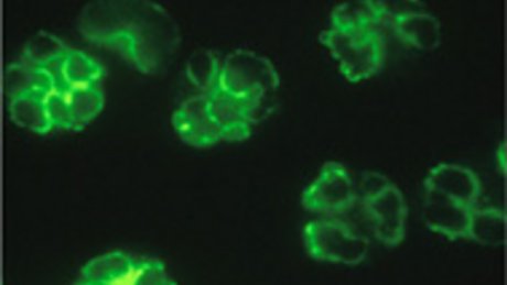 - der indirekten Immunfluoreszenz (IFT) auf Ethanol- und Formalin-fixierten Granulozyten und