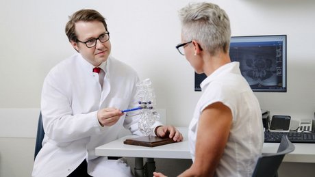 Im Rahmen der degenerativen Erkrankungen sind durch Verschleiß der Zwischenwirbelgelenke, Rückbildung der Bandscheiben und skoliotische Fehlstellungen stabilisierende und korrigierende Operationen an der Wirbelsäule manchmal nicht zu umgehen. Dabei überprüfen wir immer, ob dynamische und bewegungserhaltende Implantate in Frage kommen.