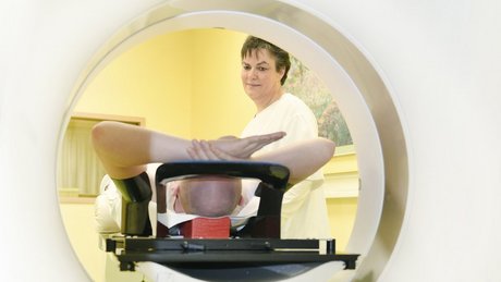 Wir erstellen für alle unserer Patienten einen individuellen Bestrahlungsplan. Dies geschieht mit Hilfe einer Computertomographie (CT), einer Kernspintomographie (MRT) oder sogar einer Positronen-Emissions-Tomographie (PET-CT). Die erstellten Bilder dienen in erster Linie nicht zur Diagnostik (Ausnahme ist das PET-CT), sondern erlauben es uns vor allem, die Bestrahlungsdosis genau an die individuellen Voraussetzungen des einzelnen Patienten anzupassen und die gesunden Organe optimal zu schonen.