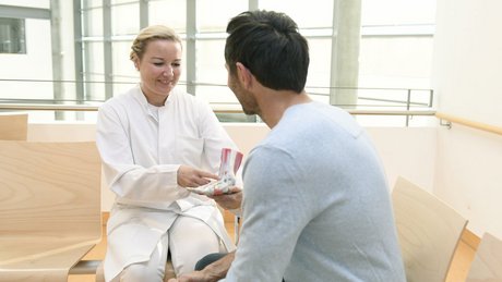 Das Behandlungsspektrum im Fuß- und Sprunggelenkszentrum reicht von konservativen Methoden bis hin zur Versteifung des Sprunggelenks. Zum fußchirurgischen Spektrum der Klinik gehört auch die Arthroskopie-Operation. Bei ausgeprägter Arthrose des oberen Sprunggelenks mit meist chronischen Schmerzen kann außerdem eine Sprunggelenksprothese helfen. Anhand einer speziellen CT-Untersuchung wird eine individuelle Prothese geplant und mit Hilfe von Modellen aus dem 3D-Drucker passgenau implantiert.