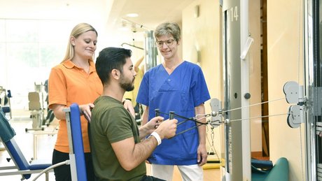Auf dieser Grundlage wird ein erster Behandlungsplan erstellt. Ähnlich wie in einem Baukasten wird die für den Patienten am besten geeignete Kombination aus physikalischen Therapien und psychosozialer Betreuung ausgewählt.